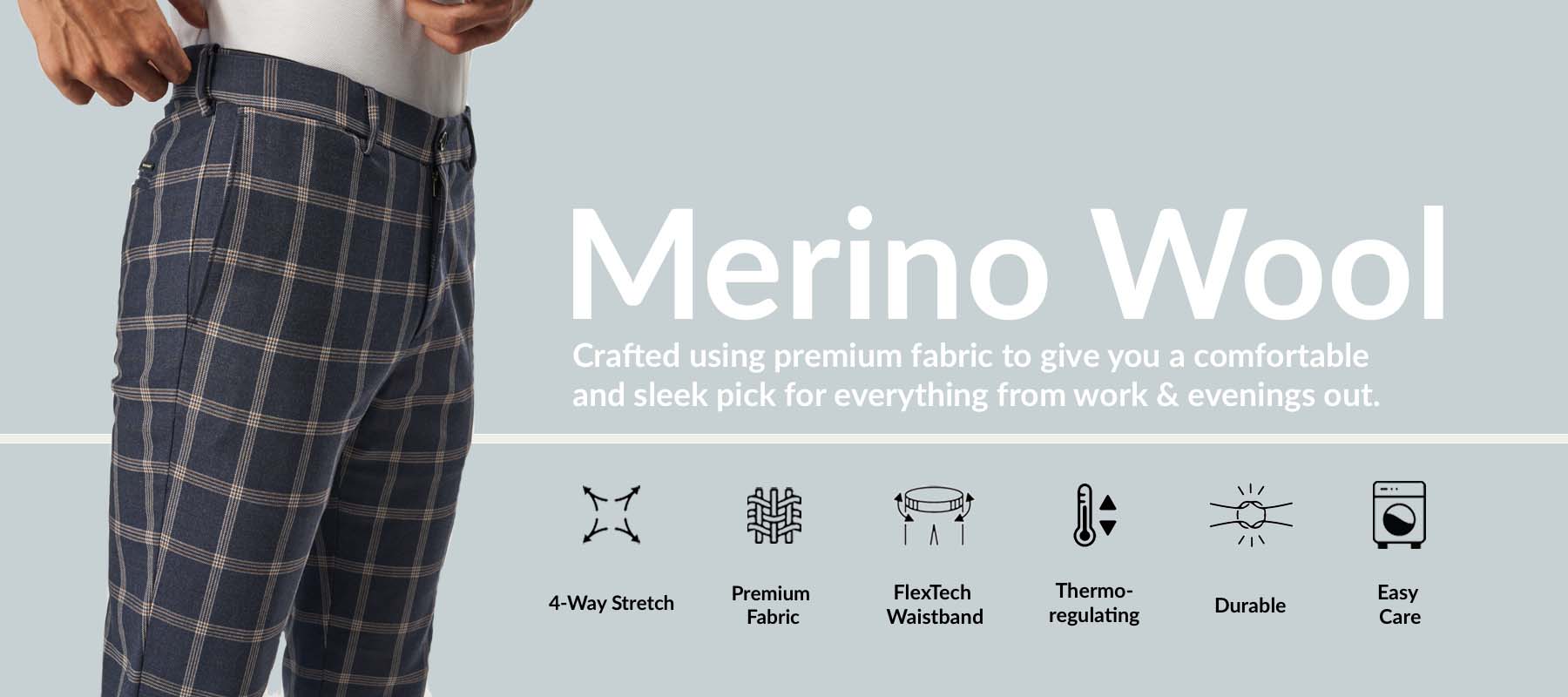 Crafted using premium merino wool to give you a comfortable and sleek pick for everything from work & evenings out with friends to formal events & wedding parties. With a rich solid color to help you stand out from the crowd, our wool pants offer wrinkle-resist & soft-feeling wear for you with FlexTech waistbands.
