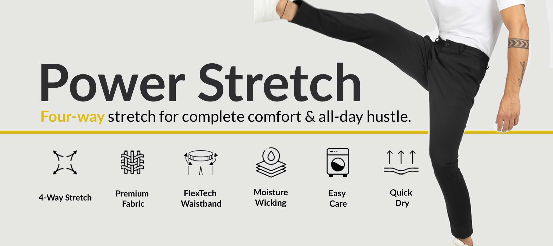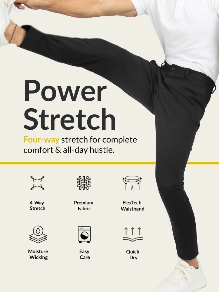 Four-way stretch comfort pants crafted using premium Ponti-De-Roma knit fabrics and engineered with an adjustable FlexTech waistband to help you stay comfortable from work to party!