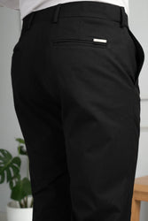 The Black All Weather Essential Stretch Pants are truly a wardrobe staple. Super stretchy and equipped with anti-wrinkle & water-repellent tech, these pants will ensure you always look dapper, no matter what. We use a special blend of lightweight, moisture-wicking fabric that keeps you cool even on hot days. They also come equipped with our FlexTech Adjustable Waistband that ensures a water-repellent comfortable fit, always.