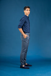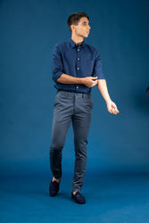 Custom fit Dress pant trousers in a stretch navy Poly Viscose fabric
