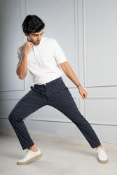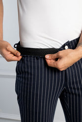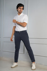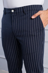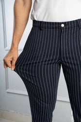 Navy Blue Pinstripe Power-Stretch Pants